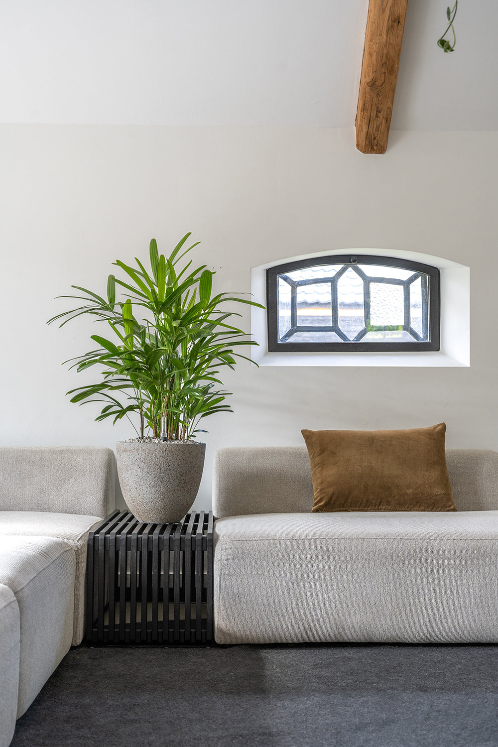 De Rhapis Excelsa wordt geleverd in een Beautanic Hydropot. Door dit speciale hydrocultuur systeem hebben de wortels voldoende zuurstof, zodat de plant optimaal kan groeien. Ompotten is hierdoor niet nodig. Selecteer hier een passende sierpot.
